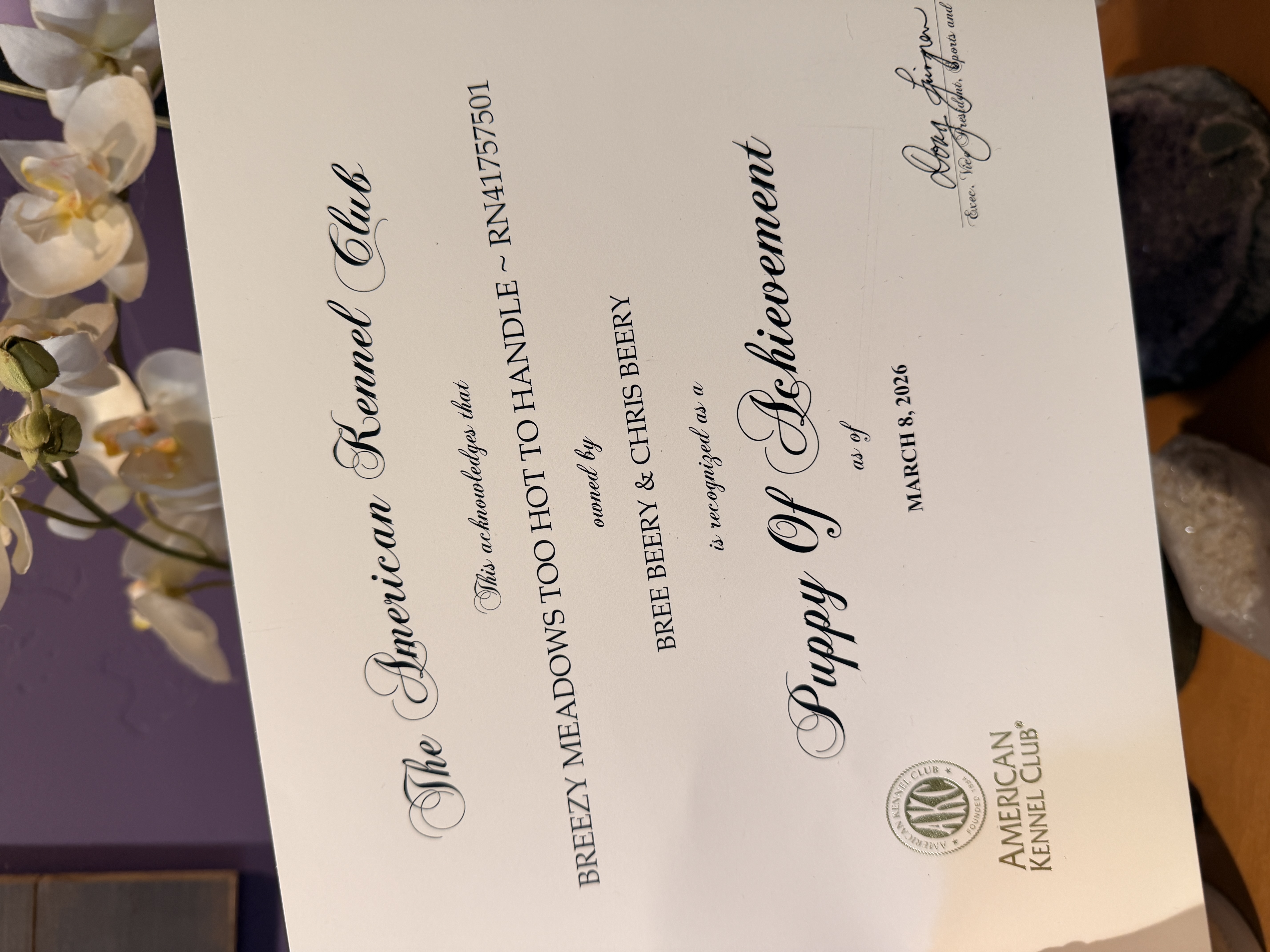 BIS Int / Nat CH, AKC GCH CH Breezy Meadows A Force Of Nature BCAT x CH Hawks Nest Little Bit Oh Heaven At Breezy Meadows ATT