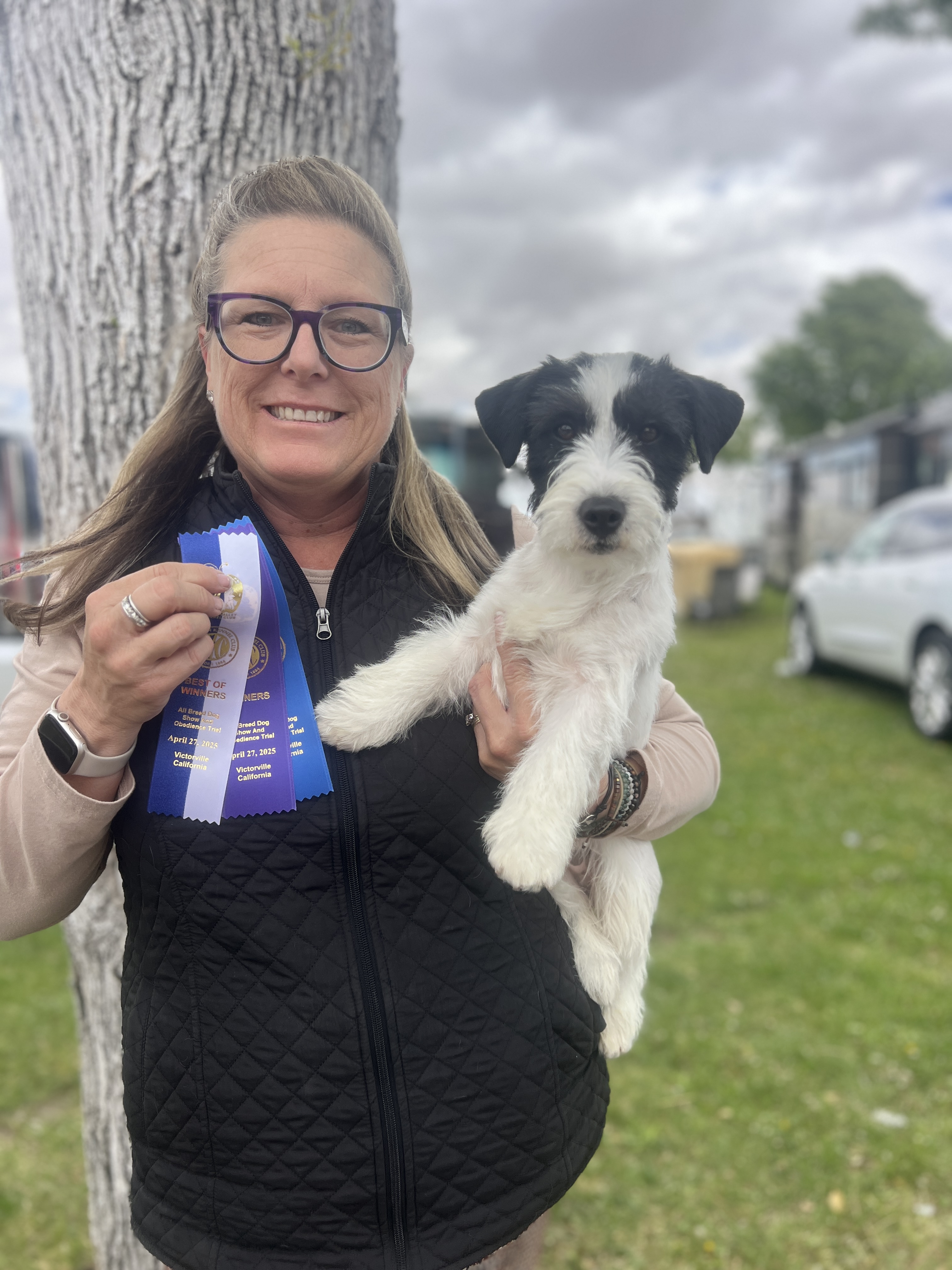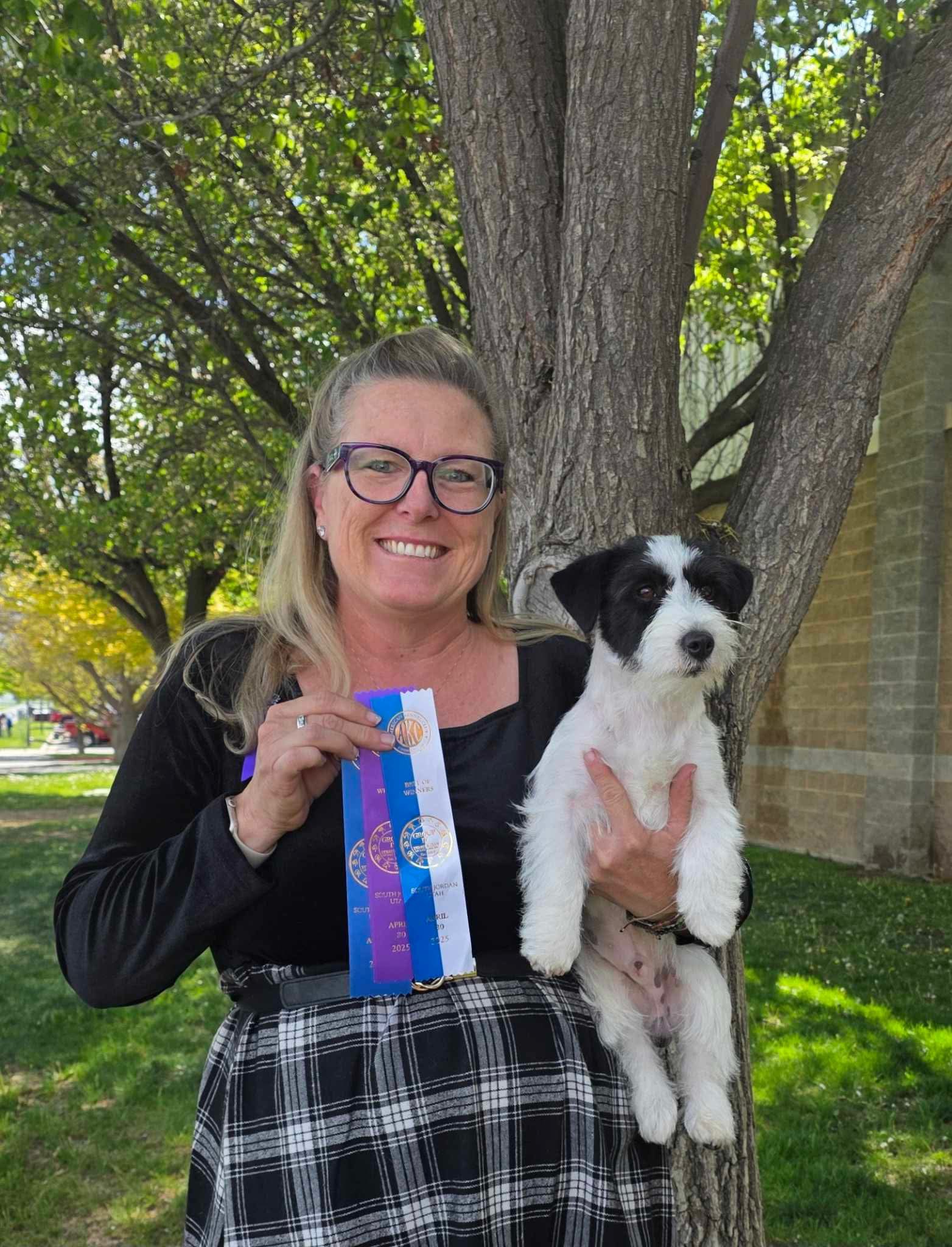 Rebel was imported from the Russtyle's Du Vallon De L'Alba Kennel in France. His father Tattoo is a World Winner, and just recently won Best In Show at the Concours General Agricole (Frances version of our Westminster). Rebel lives with us, and is co-owned with good friends. He earned his International Championship, taking a Reserve Best Puppy In Show, having only been with us for one week. He completed his AKC Championship just one day after his 1st birthday. I have always been smitten with black and whites, and I am excited to see how what he adds to our breeding program.